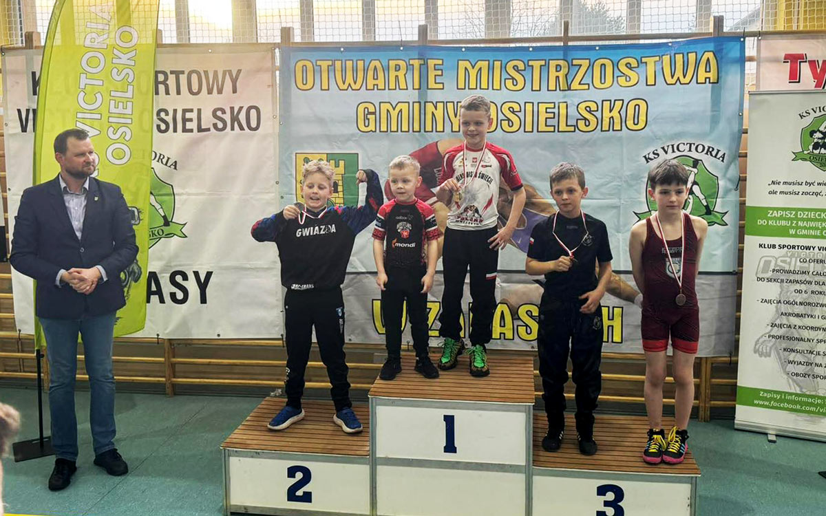 Zapaśnicy Wisły podczas zawodów w Osielsku czterokrotnie stawali na najwyższym stopniu podium / Fot. MLKS Wisła Anbud Świecie