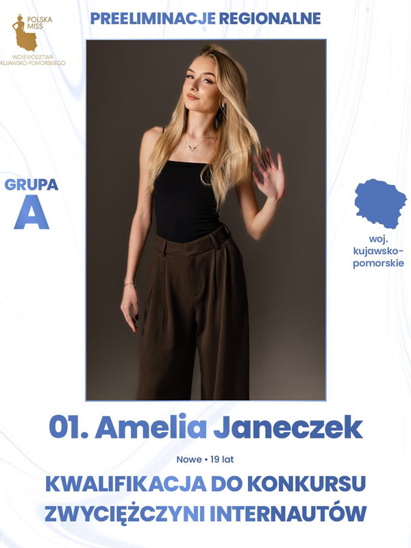 Amelia Janeczek znalazła się w półfinale tegorocznej edycji konkursu Polska Miss Województwa Kujawsko-Pomorskiego. Zdecydowały głosy internautów.