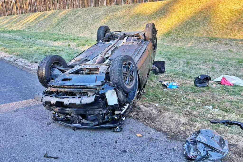 Nissan Qashqai dachował na pasie awaryjnym. Samochodem podróżował tylko kierowca.
