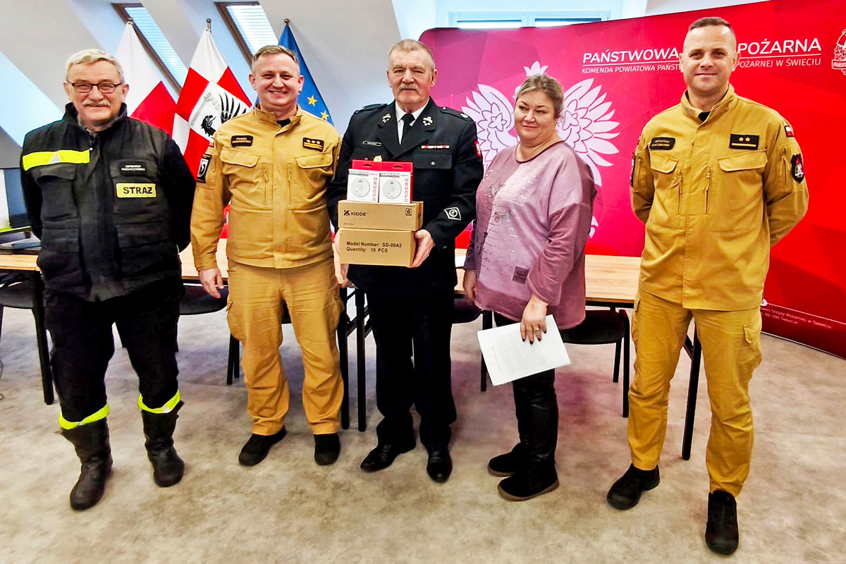 W siedzibie Komendy Powiatowej Państwowej Straży Pożarnej w Świeciu przekazano czujki dymu i tlenku węgla.