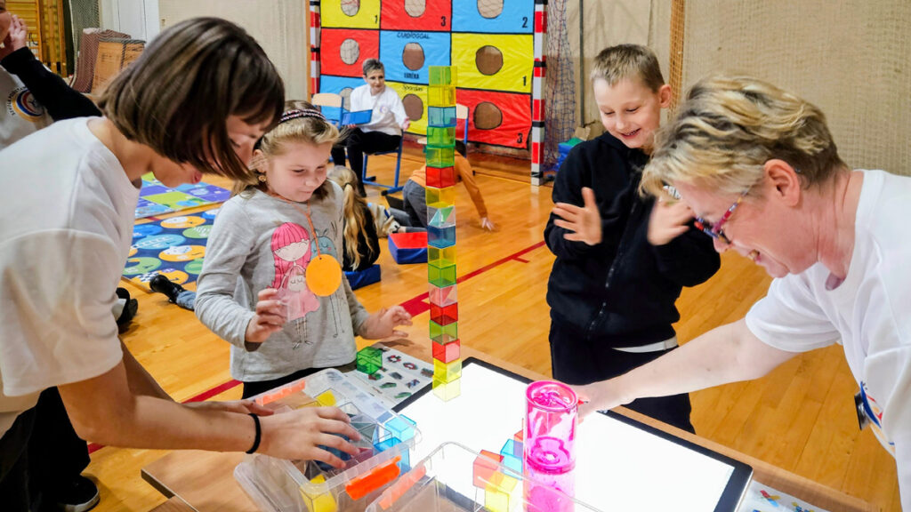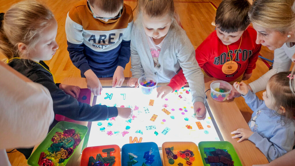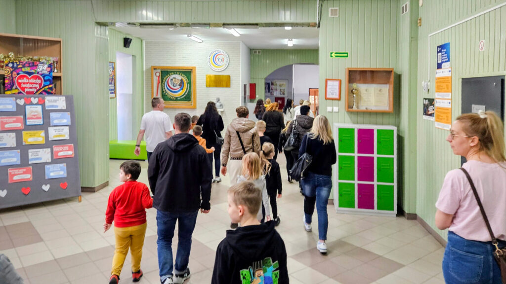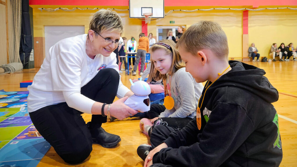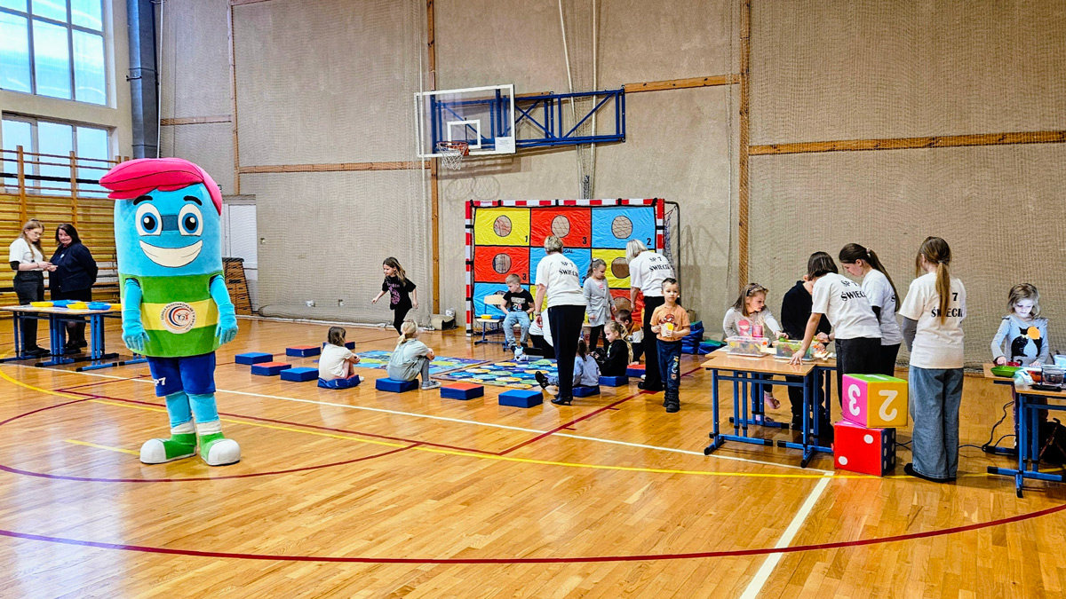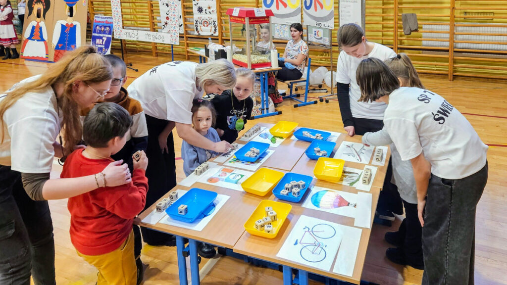 Po spacerze, chętni mieli możliwość wzięcia udziału w zabawach przygotowanych w sali gimnastycznej. Pierwsze doświadczenia szkolne dzieci zdobywały podczas nauki podstaw programowania z Photonem, następnie wykonywały kreatywne ćwiczenia na panelu świetlnym i rozwiązywały literowe łamigłówki.