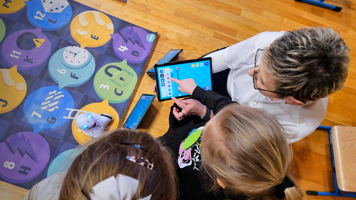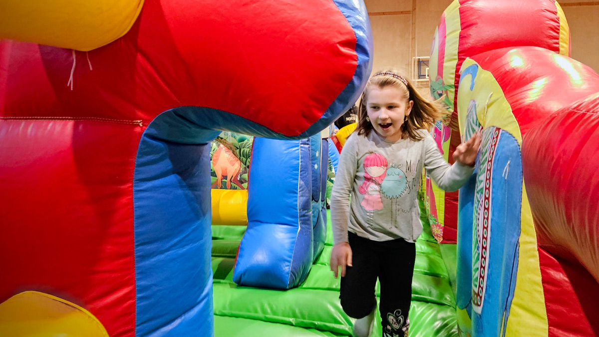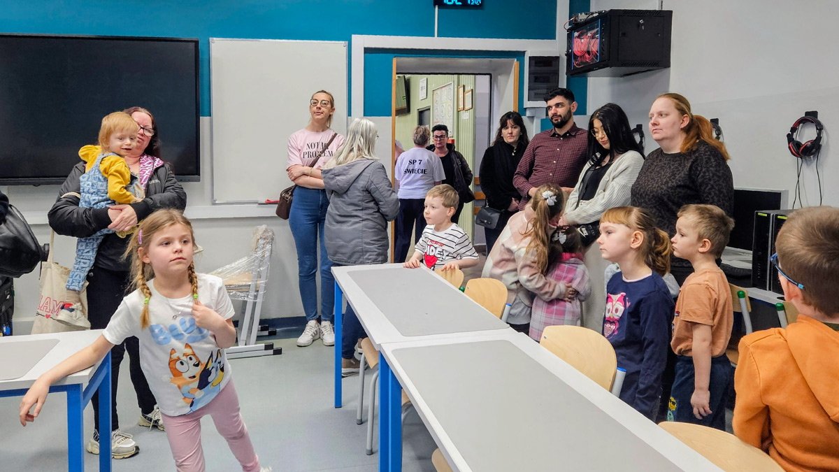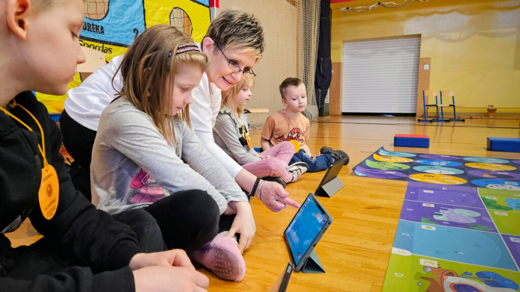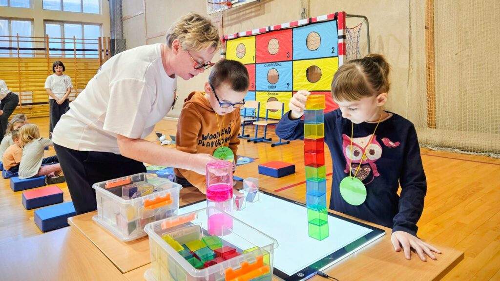 Po spacerze, chętni mieli możliwość wzięcia udziału w zabawach przygotowanych w sali gimnastycznej. Pierwsze doświadczenia szkolne dzieci zdobywały podczas nauki podstaw programowania z Photonem, następnie wykonywały kreatywne ćwiczenia na panelu świetlnym i rozwiązywały literowe łamigłówki.