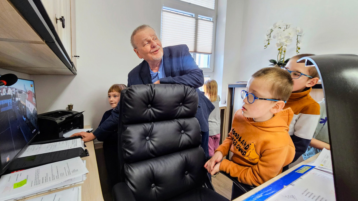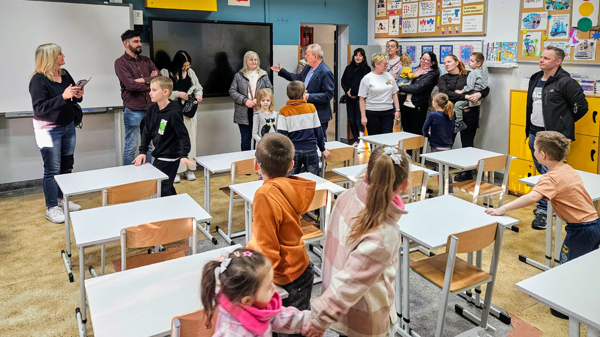 Kolejnym punktem programu było zwiedzanie budynku. Goście mogli zobaczyć m.in. sale lekcyjne, pracownię komputerową, gabinet dyrektora i sekretariat.