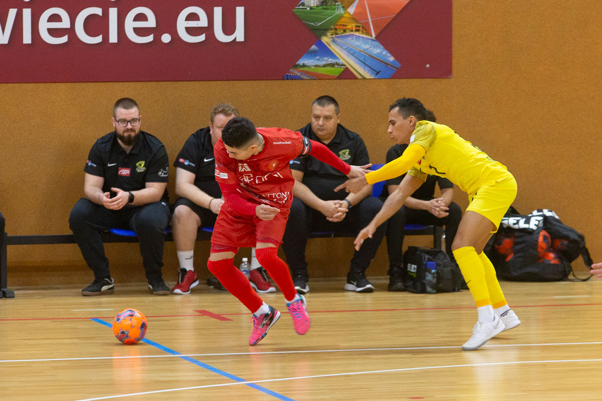 Futsal Świecie zmniejszył starty do jednego gola i w końcówce trener Mikołajewicz wycofał bramkarza. „Świeckie Pantery” rozegrały swoją akcję bardzo cierpliwie. Gdy obrońcy Widzewa skupili się na noszącym plastron Mrówczyńskim, piłka trafiła do Tavo, który idealnie zagrał do Mateusza Cymana, a ten z najbliższej odległości wpakował piłkę do siatki. Świecka hala oszalała. Łodzianie w ostatniej minucie próbowali jeszcze zaryzykować i również wycofać bramkarza, grając o pełną pulę, ale dobre interwencje Bartka Piotrowskiego zatrzymały ich zapędy.