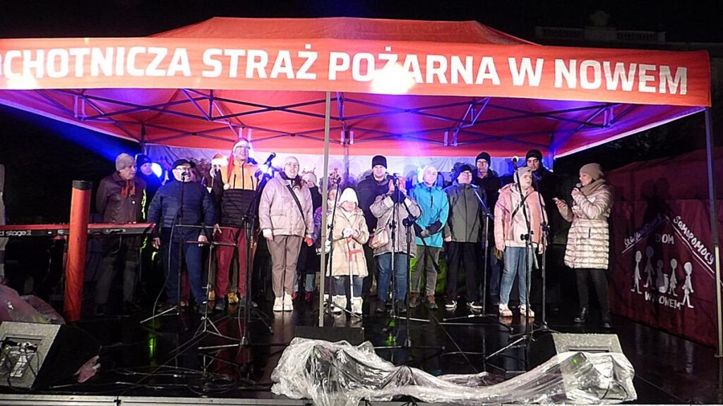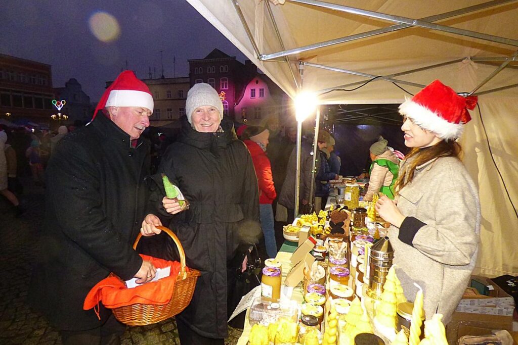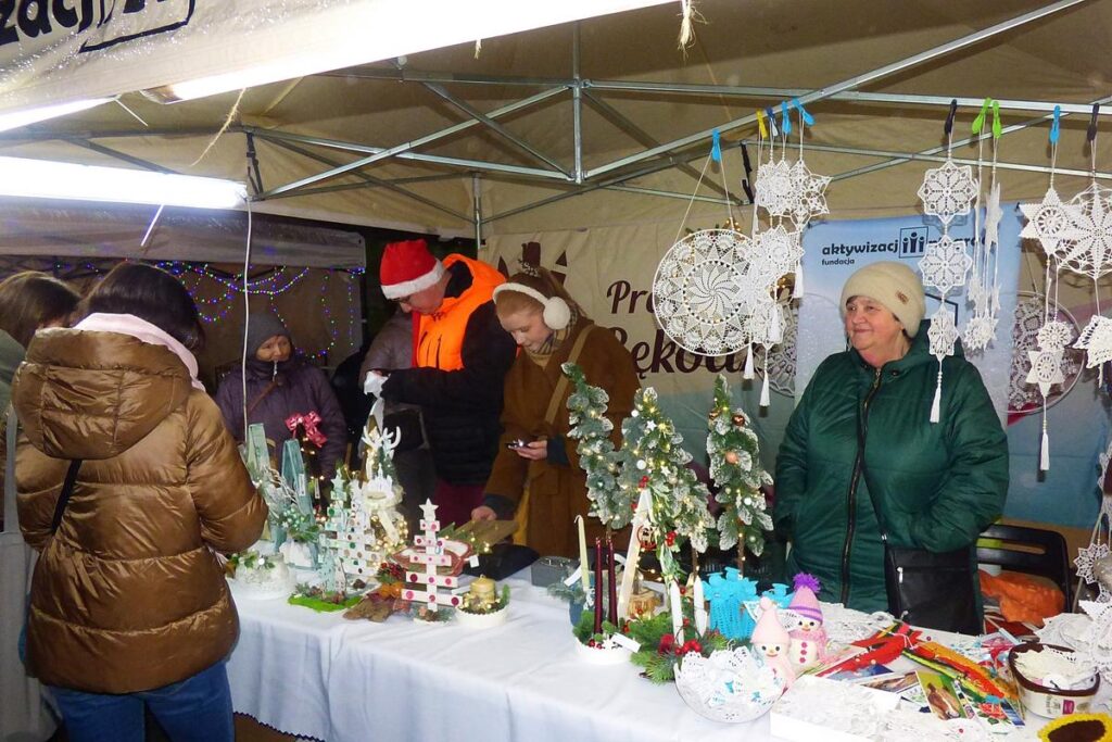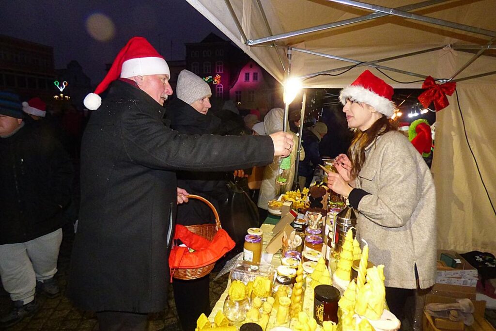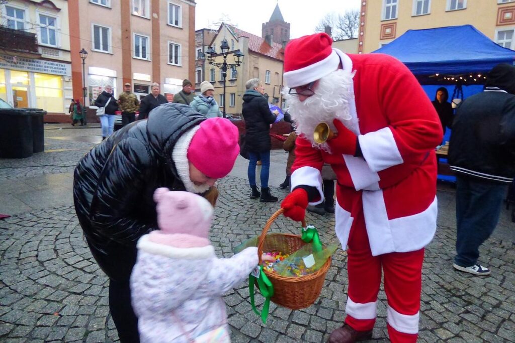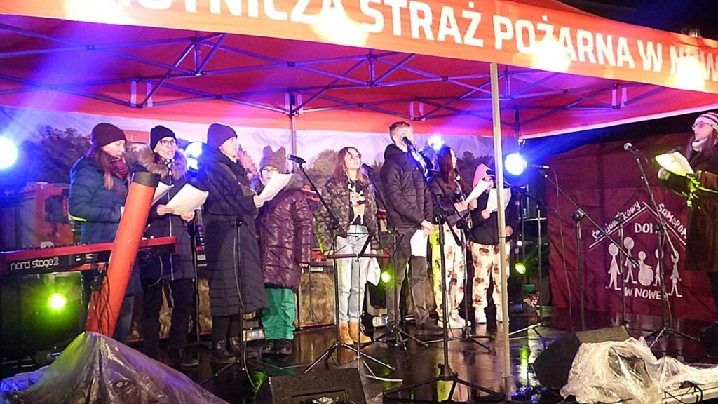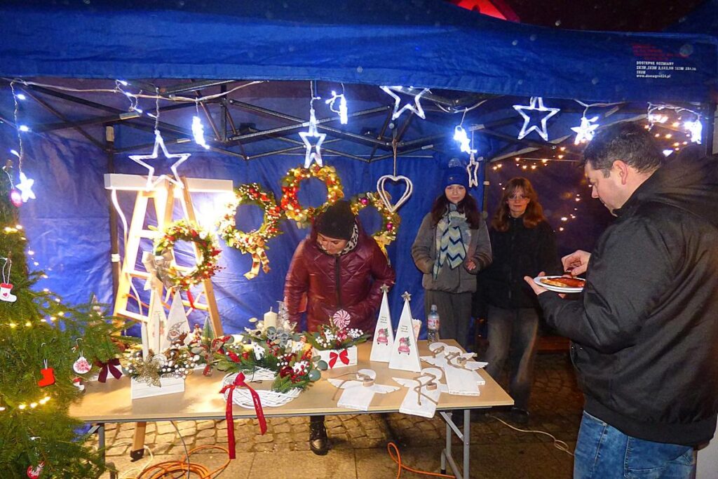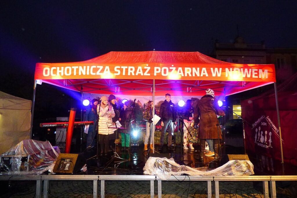 Na Rynku w Nowem na mieszkańców czekały stoiska ze świątecznymi ozdobami, ciastami i rękodziełem. Można było również posilić się pysznymi kiełbaskami z grilla. Nie zabrakło naturalnie śpiewania kolęd i piosenek świątecznych oraz Świętego Mikołaja.