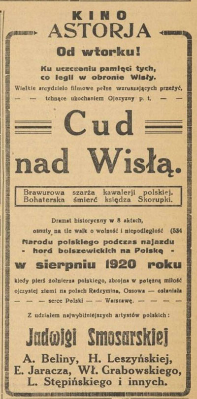 Ponieważ przez takie postępowanie wyrządzono mi nieobliczalną szkodę, a dany film jest całkowicie bez zarzutu, co potwierdziło samo starostwo, oraz ponieważ film ten był, co da się udowodnić, wyświetlany przez wiele dni w miastach: Bydgoszczy, Grudziądzu, Tczewie i Starogardzie, nie wywołując najmniejszego zastrzeżenia, niniejszym pozwalam sobie uprzejmie zapytać, do których władz powinienem się zwrócić, aby dochodzić swoich praw.