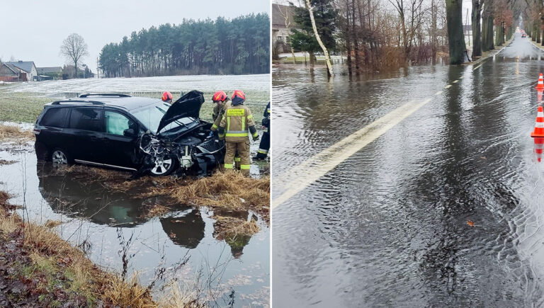 Droga powiatowa w Krąplewicach (gm. Jeżewo) jest całkowicie zalana. To efekt wczorajszych opadów i roztopów.
