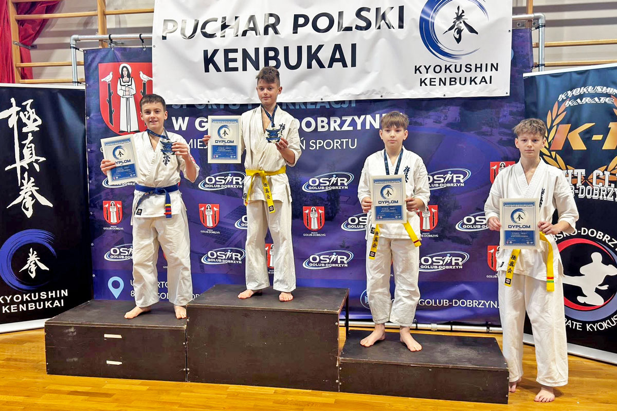 Na niedzielnych zawodach w Golubiu-Dobrzyniu odbyła się również uroczysta ceremonia wręczenia japońskich czarnych pasów oraz certyfikatów dla osób, które pozytywnie zdały egzamin na stopnie mistrzowskie podczas tegorocznego Letniego Obozu Kyokushin Kenbukai PFKK w Tucholi. Jakub Kunkel odebrał certyfikat i pas 3 dan.