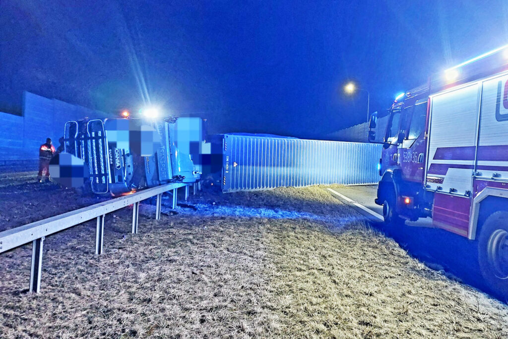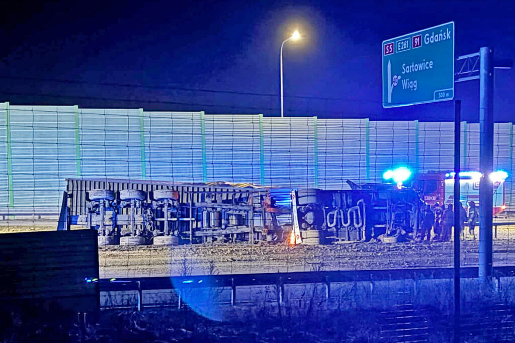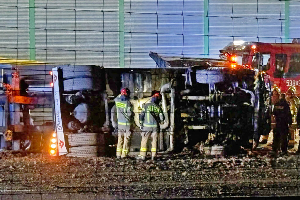 Kiedy strażacy zakończyli działania, wciąż czekano na przyjazd dźwigu, który postawi ciężarówkę na koła. Wczesnym rankiem przywrócono na tym odcinku normalny ruch.