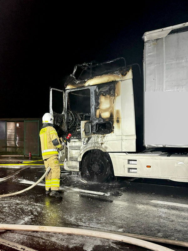 Kiedy przyjechali strażacy, kabina ciężarówki była w całości objęta ogniem.