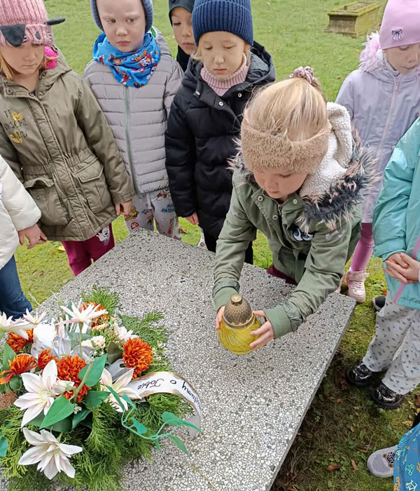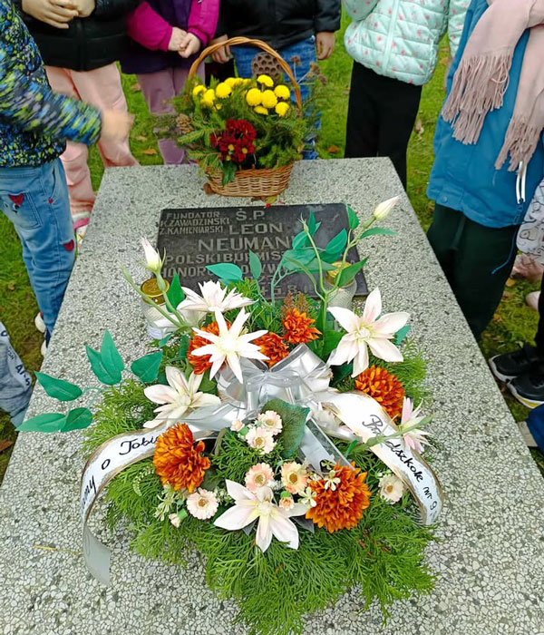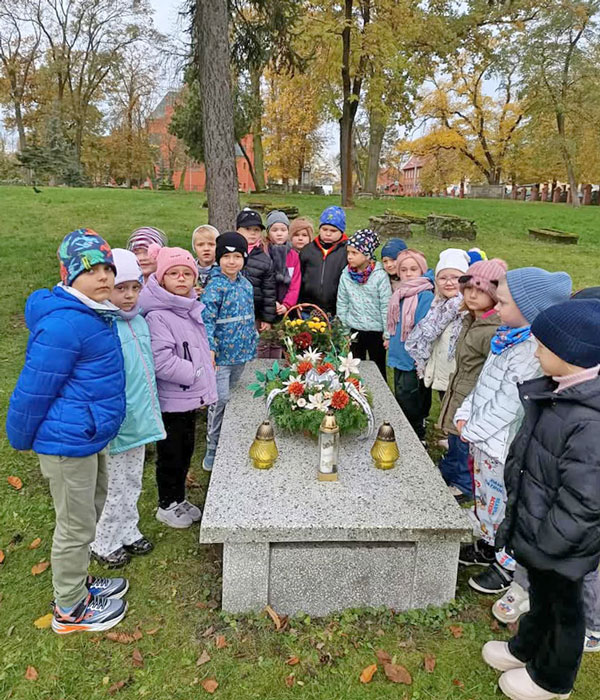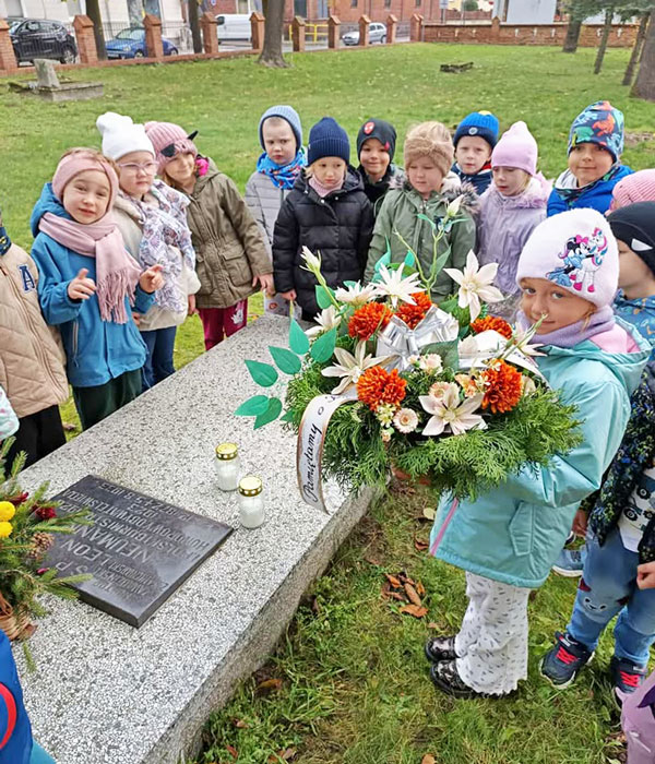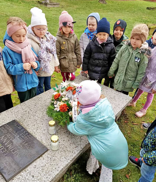 Dzieci z przedszkola przy ul. 10 Lutego złożyły kwiaty na grobie Leona Neumanna / Fot. nadesłane