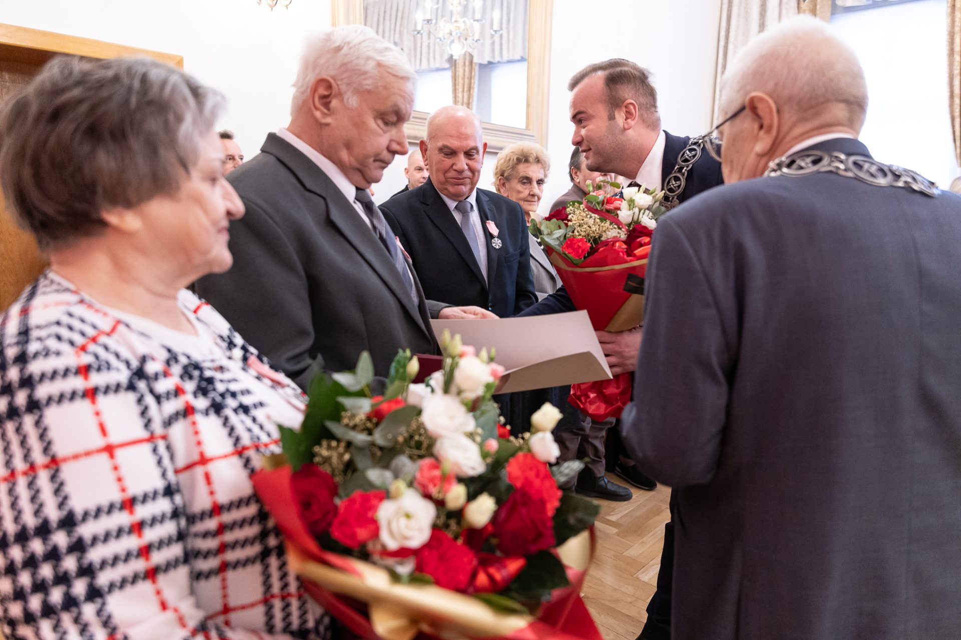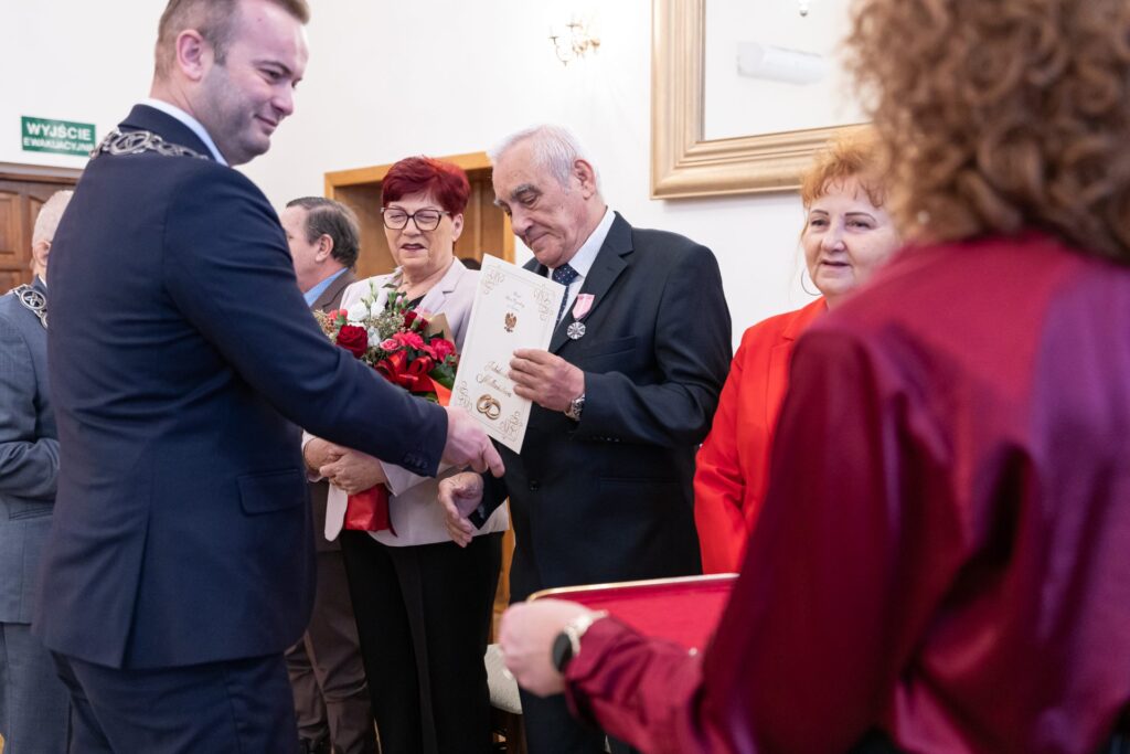 Medale nadane przez prezydenta RP wręczał dziś parom małżeńskim Krzysztof Kułakowski, burmistrz Świecia. W uroczystości uczestniczyli też Jerzy Wójcik, przewodniczący Rady Miejskiej w Świeciu i Andrzej Krawański, kierownik Urzędu Stanu Cywilnego.