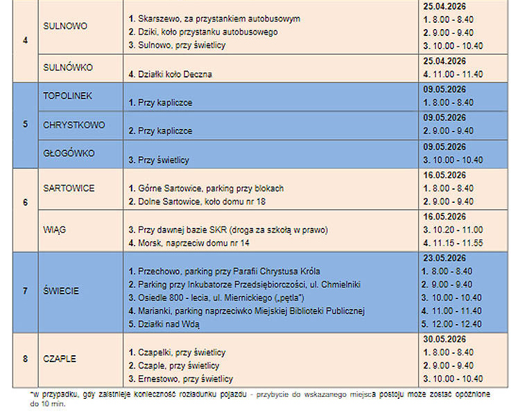 Podczas mobilnej zbiórki odpady odbierane są zarówno od mieszkańców Świecia, jak i terenów wiejskich gminy.