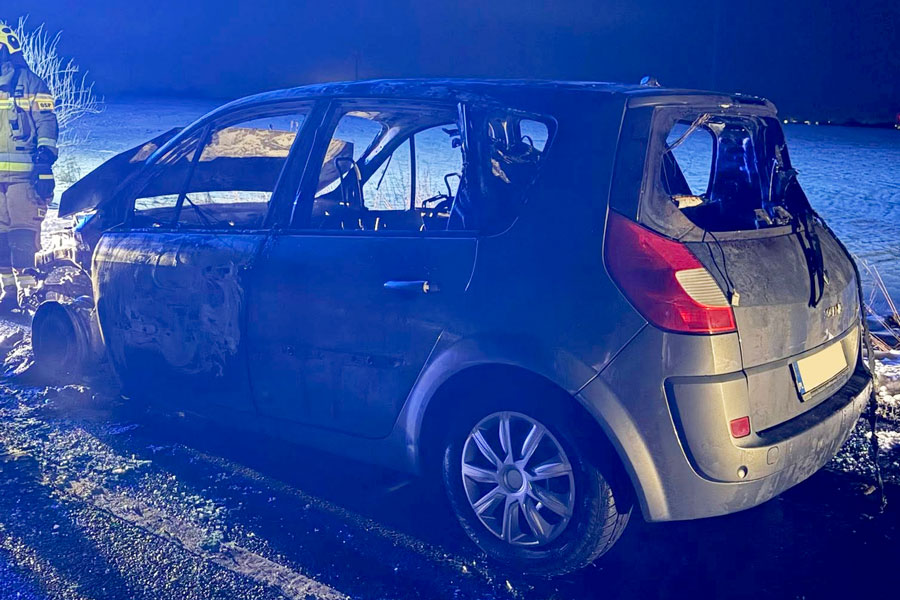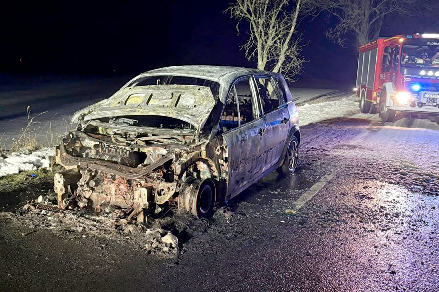 Po przybyciu na miejsce strażacy zastali pojazd objęty silnie rozwiniętym pożarem.