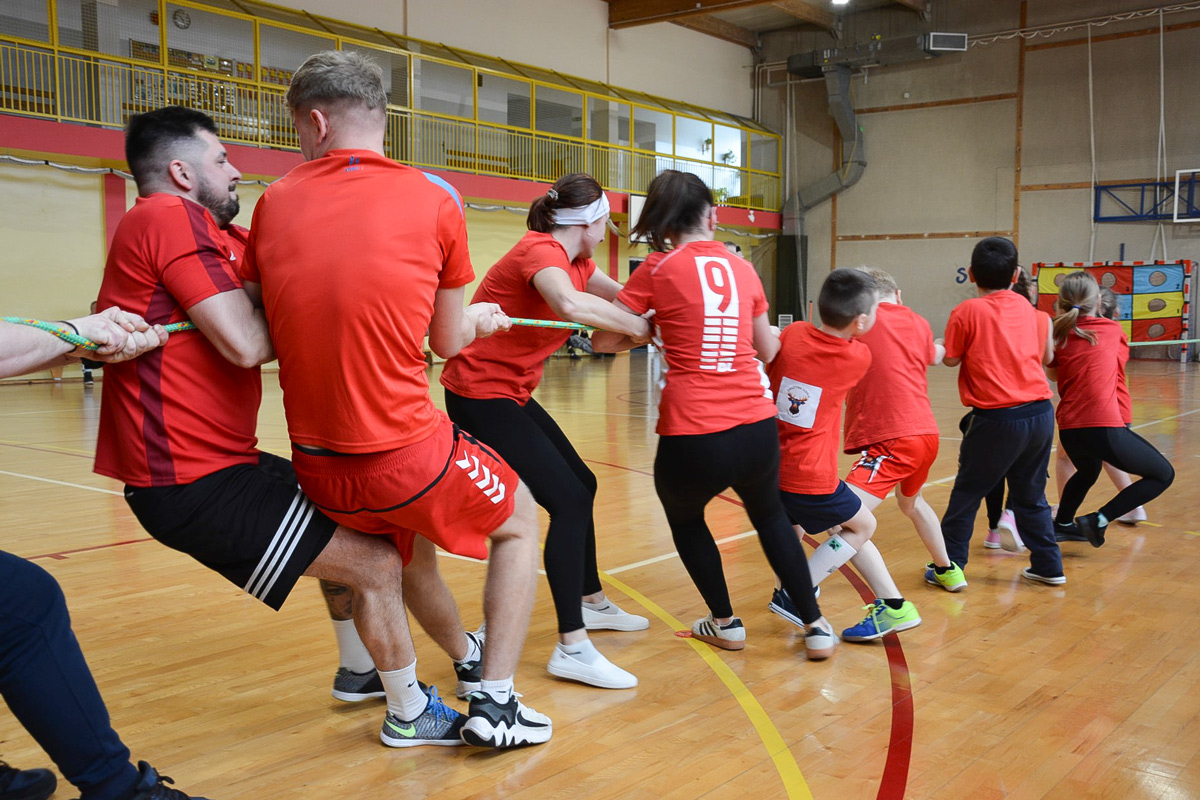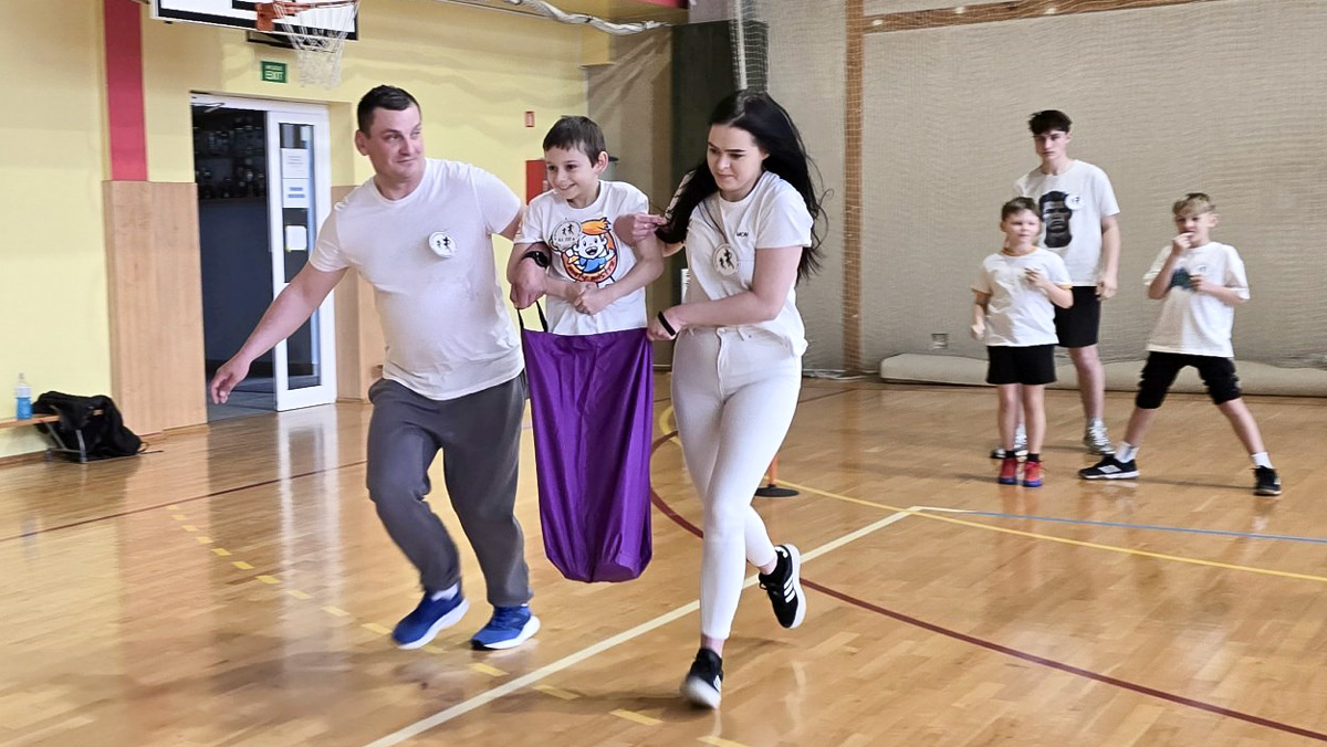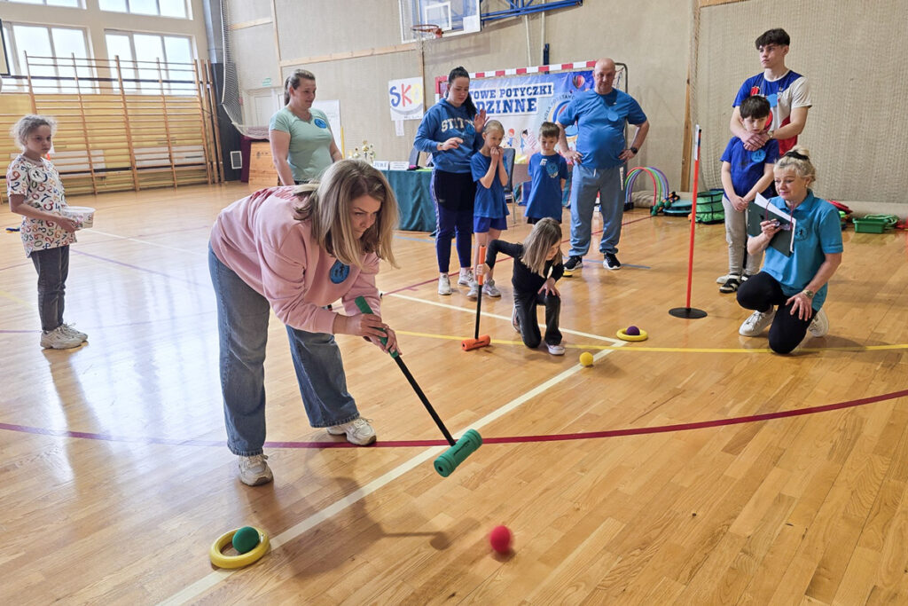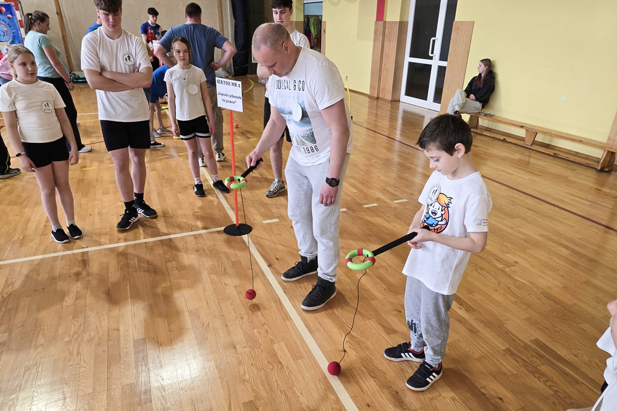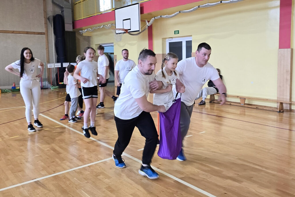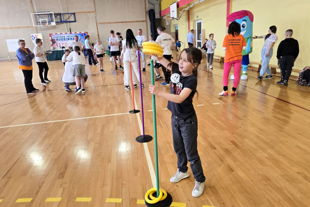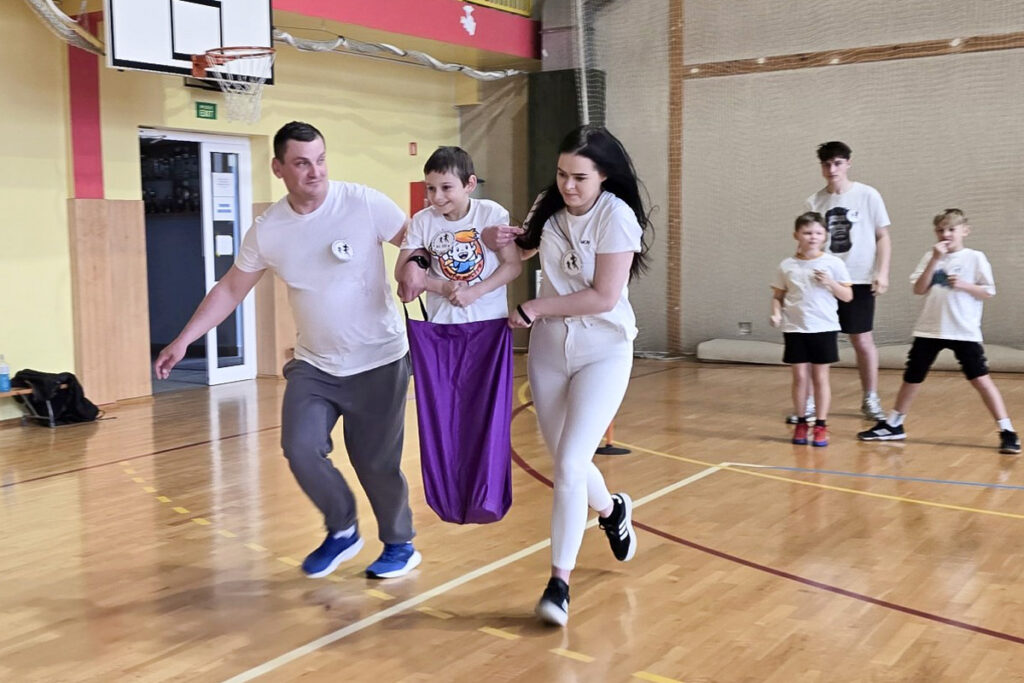 Dzieci, rodzice, członkowie rodzin oraz nauczyciele spędzili sobotnie przedpołudnie na wspólnych zabawach sportowych.