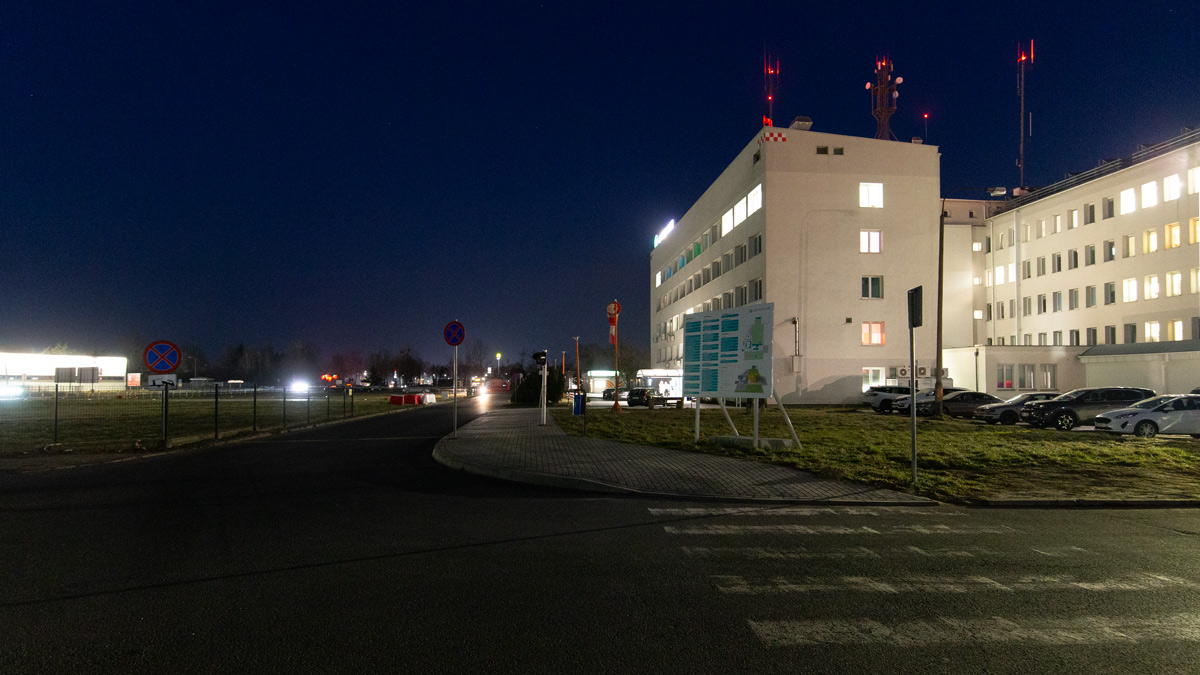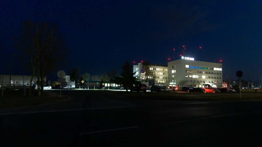 Jedyna latarnia na tej wysokości, przy wjeździe na teren szpitala, też nie działa