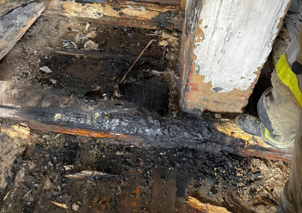 Płonęły elementy konstrukcyjne stropu koło przewodu kominowego / Fot. OSP Osie