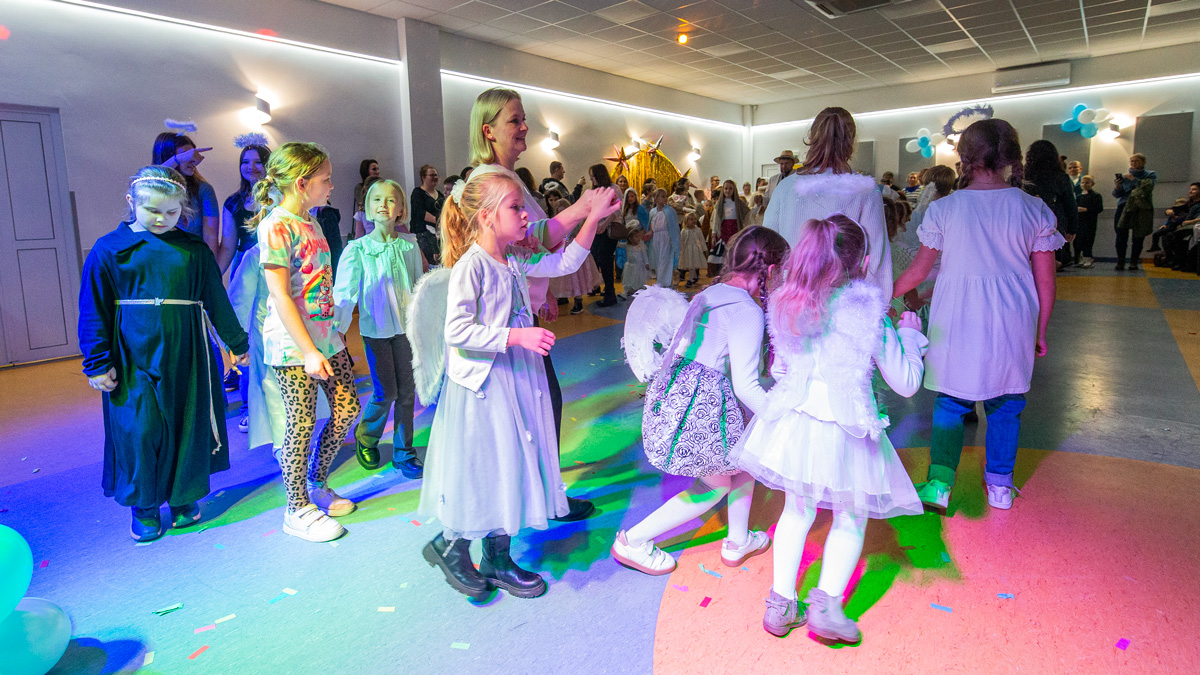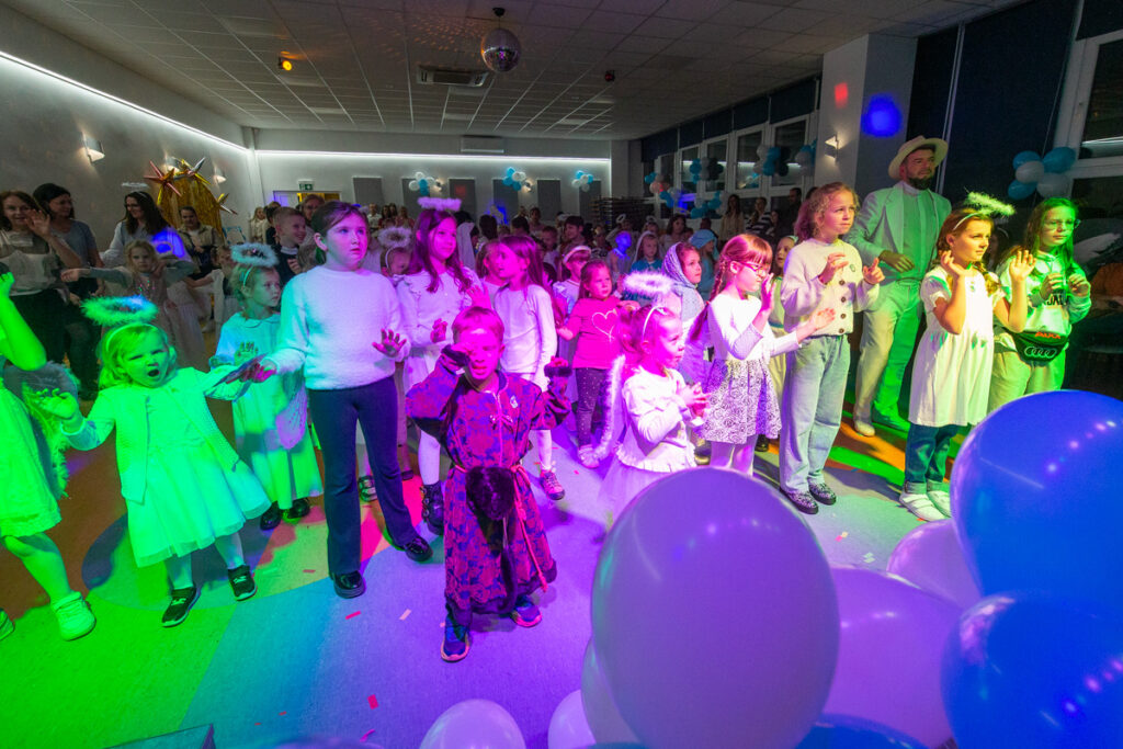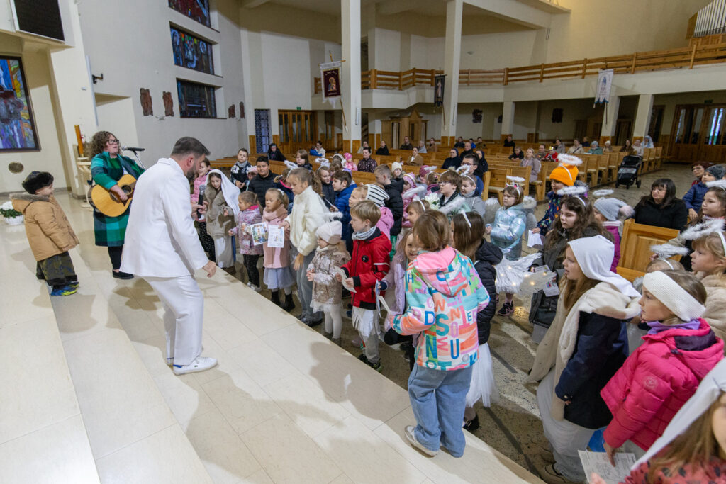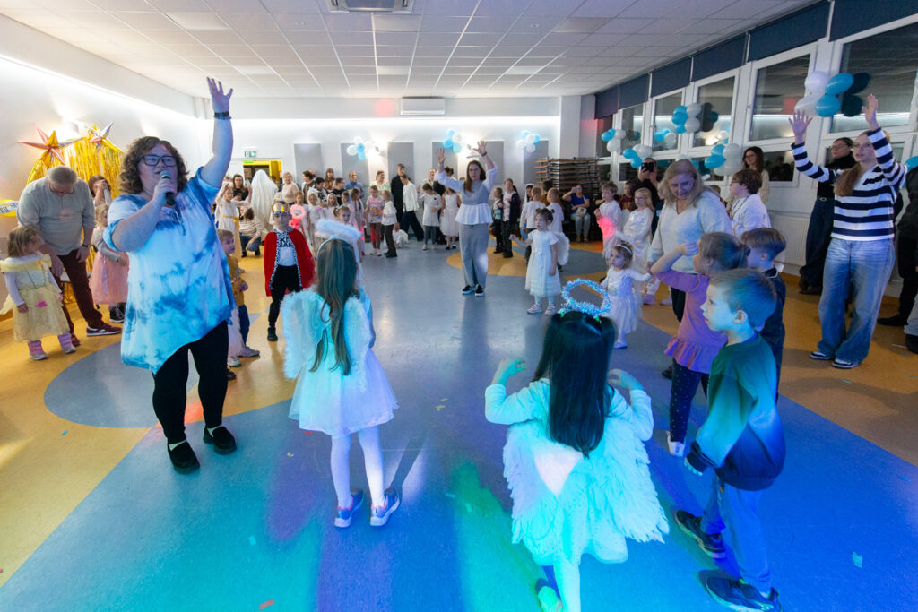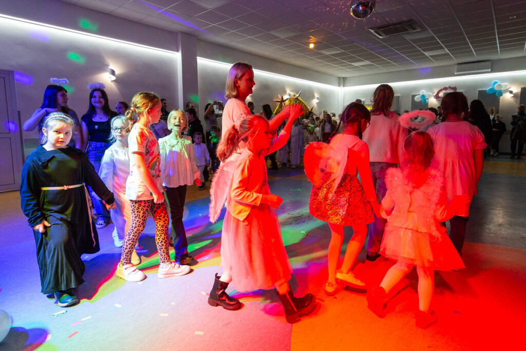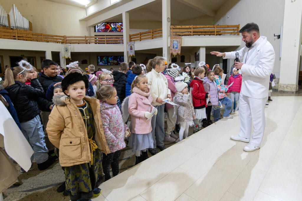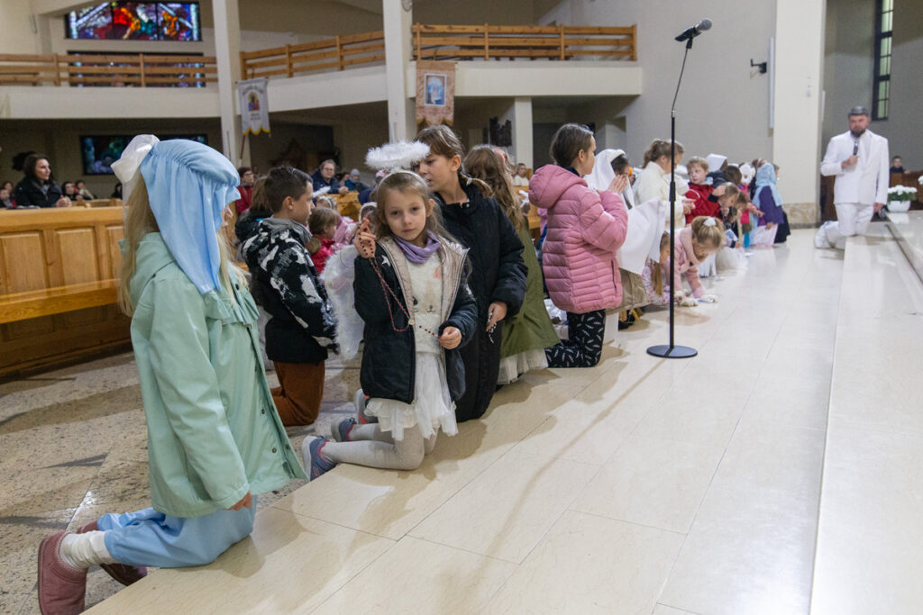 Piątkowe świętowanie rozpoczęło się o godz. 16.00 w kościele. Po krótkiej rozgrzewce wokalnej i odmówieniu dziesiątki różańca korowód przebierańców, w którym zdecydowanie dominowały anioły, przeszedł ulicami osiedla Marianki do Spółdzielczego Ośrodka Kultury Stokrotka.