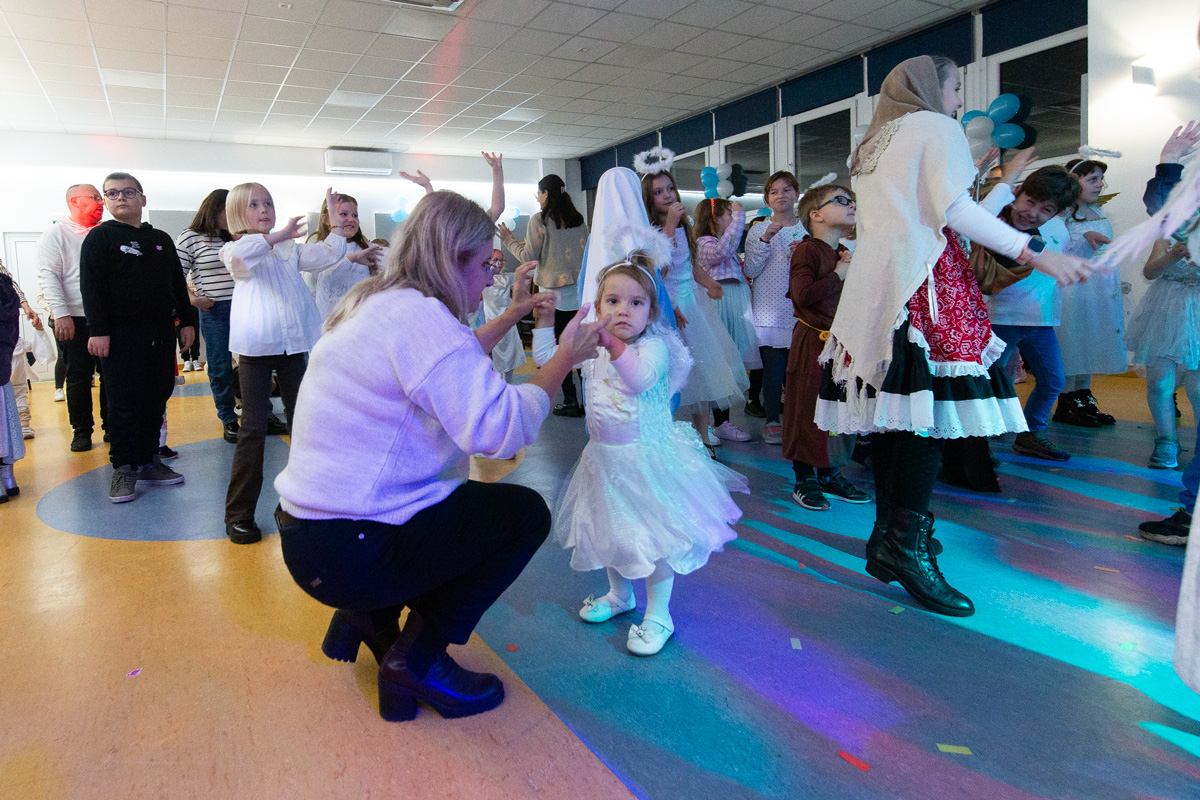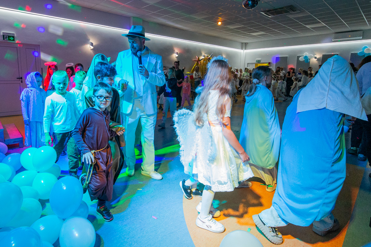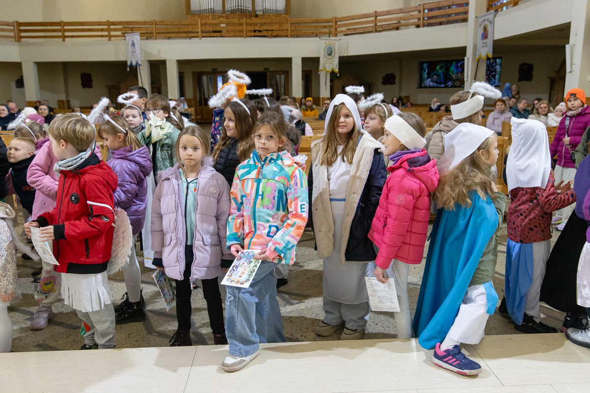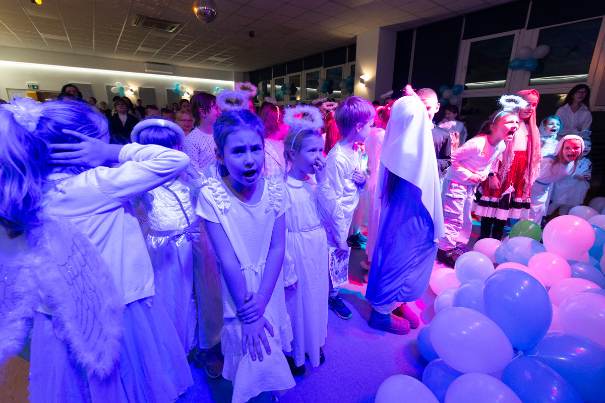 Piątkowe świętowanie rozpoczęło się o godz. 16.00 w kościele. Po krótkiej rozgrzewce wokalnej i odmówieniu dziesiątki różańca korowód przebierańców, w którym zdecydowanie dominowały anioły, przeszedł ulicami osiedla Marianki do Spółdzielczego Ośrodka Kultury Stokrotka.