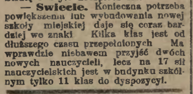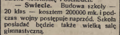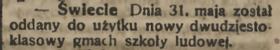 Tego roku miało też ruszyć wznoszenie nowej placówki oświatowej. Poniżej kolejne wiadomości na łamach polskiej prasy z tamtego okresu: