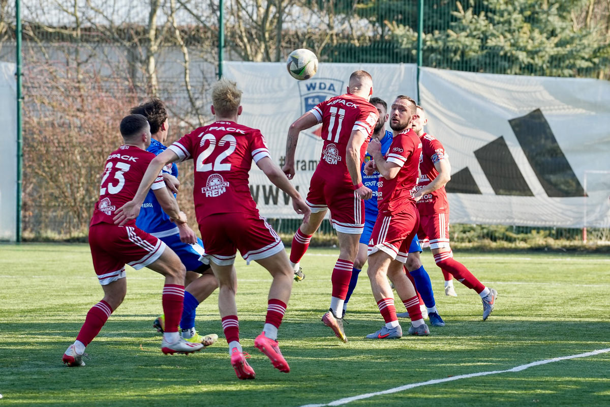 Chwilę przed przerwą mogło być 3:0. Mocny strzał głową Pawła Słabego po dośrodkowaniu z rzutu rożnego wybronił jednak bramkarz drużyny gości.