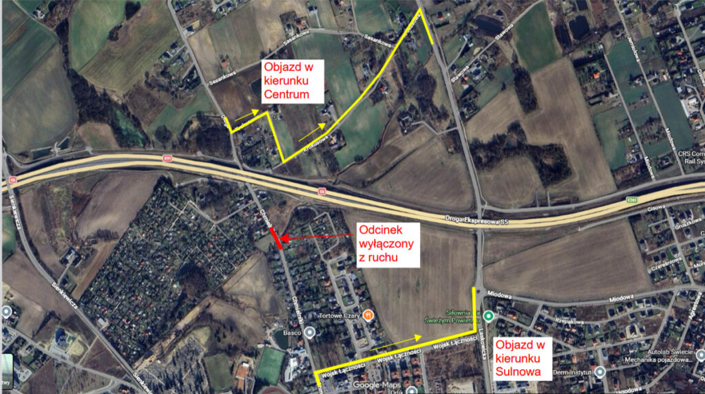 Zobacz poniżej mapkę z wyznaczonymi objazdami.