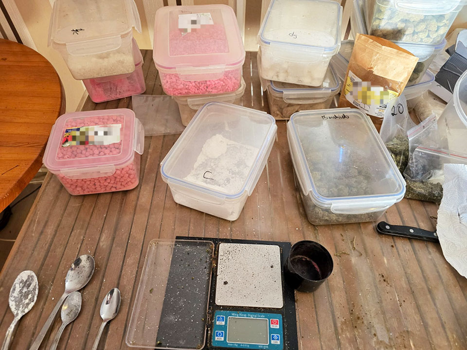 W sumie w paczkach oraz w jego domu zabezpieczyli ponad kilogram suszu roślinnego, ponad 6 kg zbrylonej substancji krystalicznej i ponad 50 tysięcy tabletek extasy.