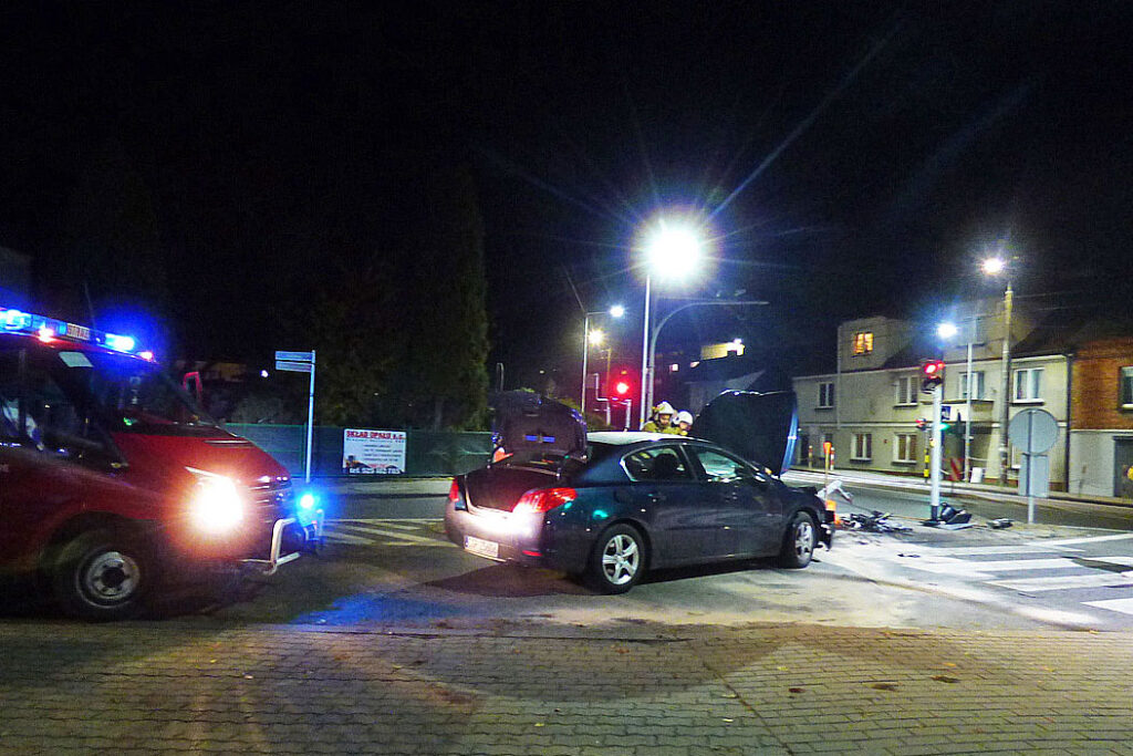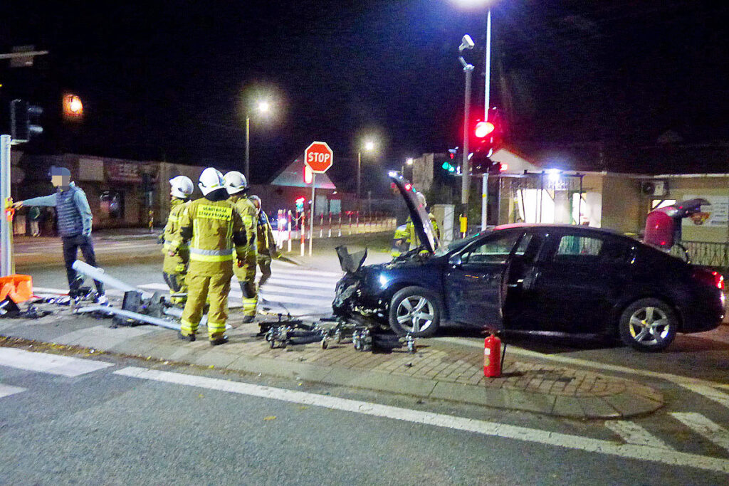 Samochód staranował jedną z sygnalizacji świetlnych i zatrzymał się tuż przed drugą.