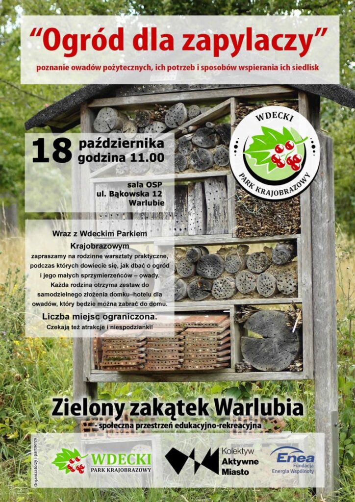 Podczas spotkania uczestnicy dowiedzą się, jak dbać o ogród i jego małych sprzymierzeńców - owady pożyteczne. Każda rodzina otrzyma zestaw elementów do złożenia własnego domku, hotelu dla owadów, który po wspólnej pracy będzie można zabrać do domu.