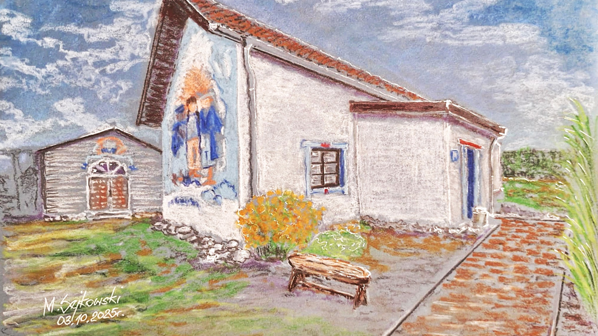 W ramach pleneru uczestnicy odwzorowywali na płótnie malownicze zabudowy, drewniane detale oraz przyrodę wsi Lipinki.